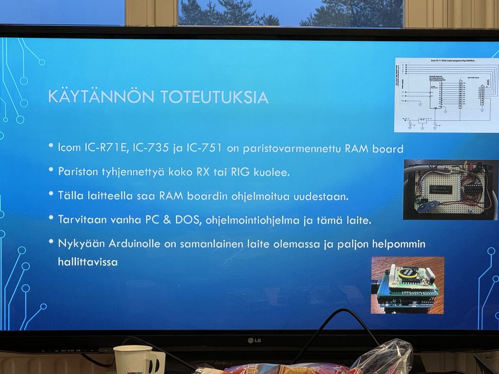 Mitä kaikkea laitteilla voikaan saada aikaiseksi oli silmiä avaava kokemus, melkeinpä kaikki on mahdollista. Itselläni löytyy Timon tekemä CW:n harjoittelulaite, johon kytketään avain,kuulokkeet ja virta. Laite ilmaisee näytöllä mitä merkkejä tulikaan sähkötettyä. Tietokoneesta kun on kyse niin sähkötyksessä tulleille virheille ei ole sijaa. Laitteeseen myös voi asettaa halutun sähkötysnopeuden. Oikein hyvä laite CW:n harjoitteluun työmatkalla tai vaikka kotisohvalla. Suuret kiitokset Timolle mahtavasta esitelmästä!